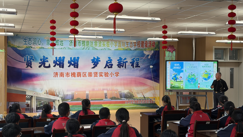 环保志愿者杨长寨在崇贤实验小学的讲座中表示,地球是人类共同的家园,生态环境保护没有旁观者,人人都是参与者、建设者、守护者。世界地球日不仅是一个纪念节日,更是一次行动日。它时刻提醒我们,要始终敬畏自然、尊重自然、顺应自然、保护自然,牢固树立“绿水青山就是金山银山” 的理念,将环保的种子根植于心,让绿色行动融入日常、化作经常。