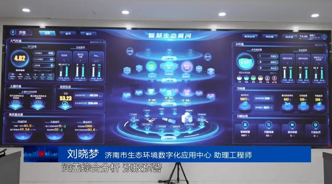 为落实黄河重大国家战略,提升流域环境监管数字化水平,济南市2022年起在全国率先开展“智慧生态黄河”建设。目前,智慧生态黄河平台已建成水环境、大气环境等11个业务系统,涵盖综合分析、预报预警及污染溯源等122项功能模块,聚焦环境管理、非现场执法、便民惠企等数字化场景,全面服务济南市环境管理业务开展,推动全市生态保护高水平保护与经济社会高质量发展。