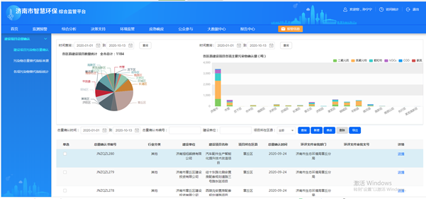 一是依托全市智慧环保综合监管系统,在全省率先建立污染物总量指标信息管理平台。为全面掌握全市主要污染物总量指标余量,高效管理建设项目使用量,济南市依托全市智慧环保综合监管系统,在充分调研论证的基础上,在全省率先建立污染物总量指标信息管理平台。信息平台共设立建设项目污染物总量确认、污染物总量替代指标来源、各项污染物替代指标统计三个模块,能够实现建设项目总量确认以及替代源的动态更新,可以实时录入、修改、查询、统计全市各区县建设项目总量确认项目数量、六项污染物确认量、总量指标替代来源项目数量以及污染物可替代量,并能实现上传以及调阅导出替代源减排档案,确保全市建设项目总量指标使用规范、透明,各项污染物总量指标可用余量一目了然,为全市发展拓展污染物排放总量空间。2020年以来,全市共为1184个建设项目办理总量确认手续,目前尚有348个替代源项目,可以保证全市省、市重点项目建设。