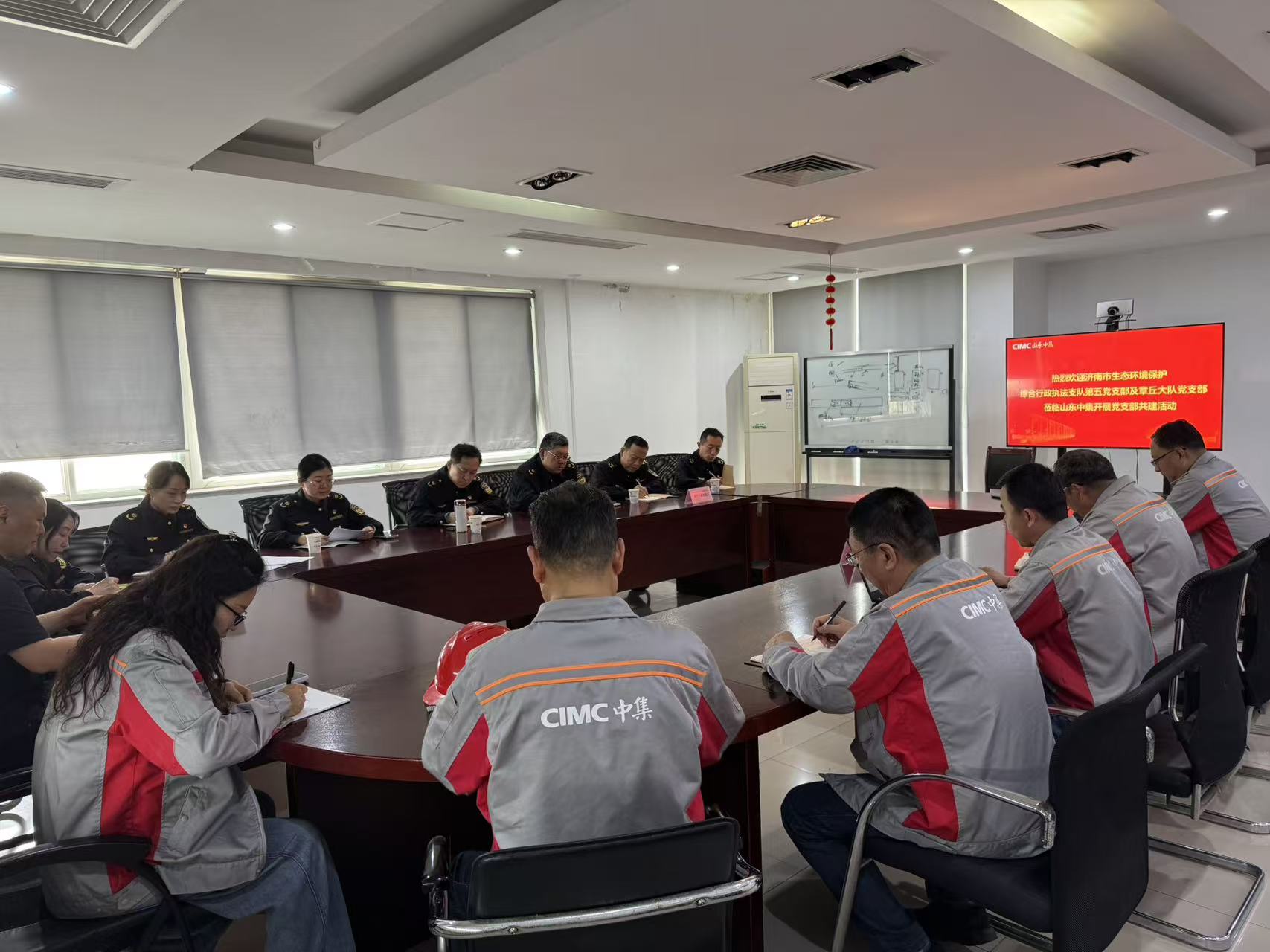 在支部共建活动中,中集车辆(山东)有限公司党支部介绍了企业最新情况,结合企业在绿色低碳发展方面的工作和遇到的问题向生态环境部门提出了相关意见建议。市生态环境保护综合行政执法支队第五党支部、市生态环境局章丘分局第六党支部就进一步提升生态环境执法效能、全力帮扶企业化解企业发展中的问题进行了深入交流研讨,对企业提出的需求进行实地指导帮扶。